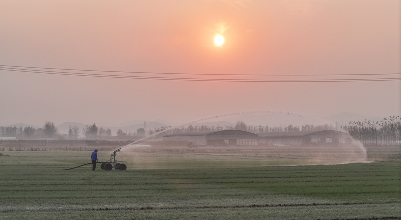 11月7日,河南省商丘市夏邑县会亭镇农民在麦田浇水。