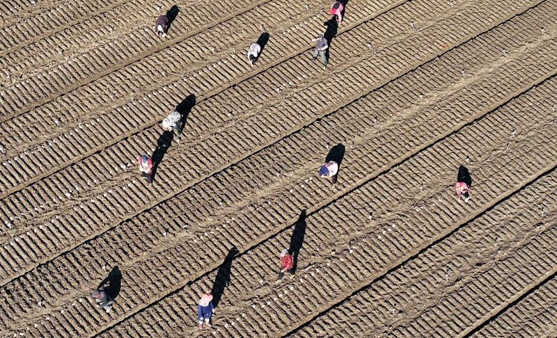 11月7日,河北省石家庄市藁城区常安镇里庄村村民在田间劳作(无人机照片)。