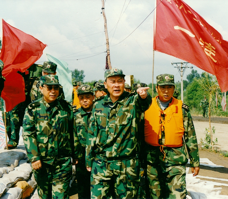 1998年8月,梁光烈同志在哈尔滨地区指挥部队抗洪抢险。