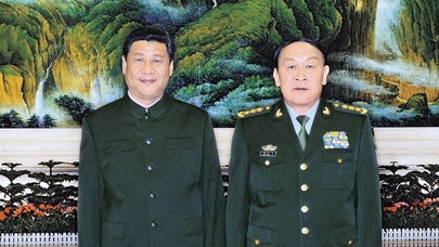 2012年10月15日,习近平同志在八一大楼与梁光烈同志合影留念。