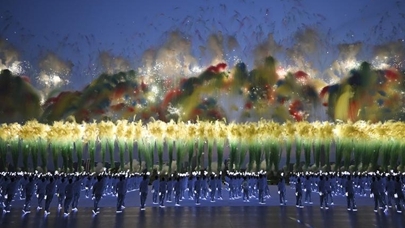8月7日拍摄的开幕式上的焰火表演。