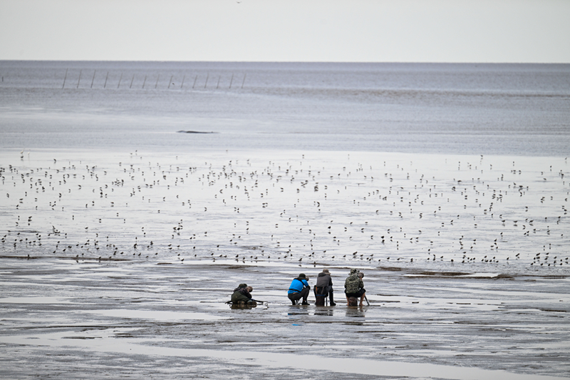 8月25日,摄影爱好者、鸟类保护者在东台条子泥湿地拍摄观测鸟类。