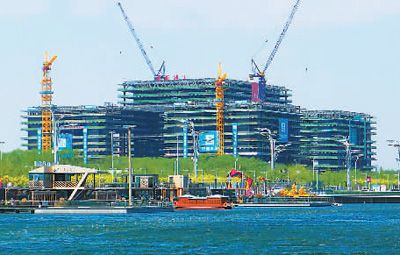 图为正在北京奥林匹克公园中心区建设的亚洲基础设施投资银行总部大楼,目前已经完成主体结构施工。胡庆明 摄(人民视觉)