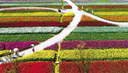 游人在武汉东西湖郁金香主题公园里赏花踏青。新华社记者 程 敏摄