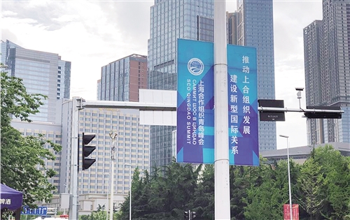 青岛街头随处可见迎接上合组织青岛峰会的标识。记者 周明阳 摄
