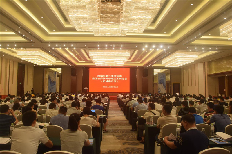 为深入贯彻落实《政府网站发展指引》,进一步加强政府网站建设与管理,7月12日,自治区人民政府办公厅在防城港、百色、来宾分片区召开2018年第二季度加强全区政府网站管理业务研讨会,采取以会代训的方式,让全区1164个政府网站管理单位负责人、业务骨干和一线人员更全面深入地熟悉业务,掌握政府网站政策和标准规范。这是自2015年开展政府网站普查、季度抽查以来,第一次大规模进行全员培训,参会人员接近1300人。自治区政府办公厅有关负责人出席了会议。
