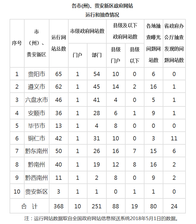 附件:1.各市(州)、贵安新区政府网站运行和抽查情况
