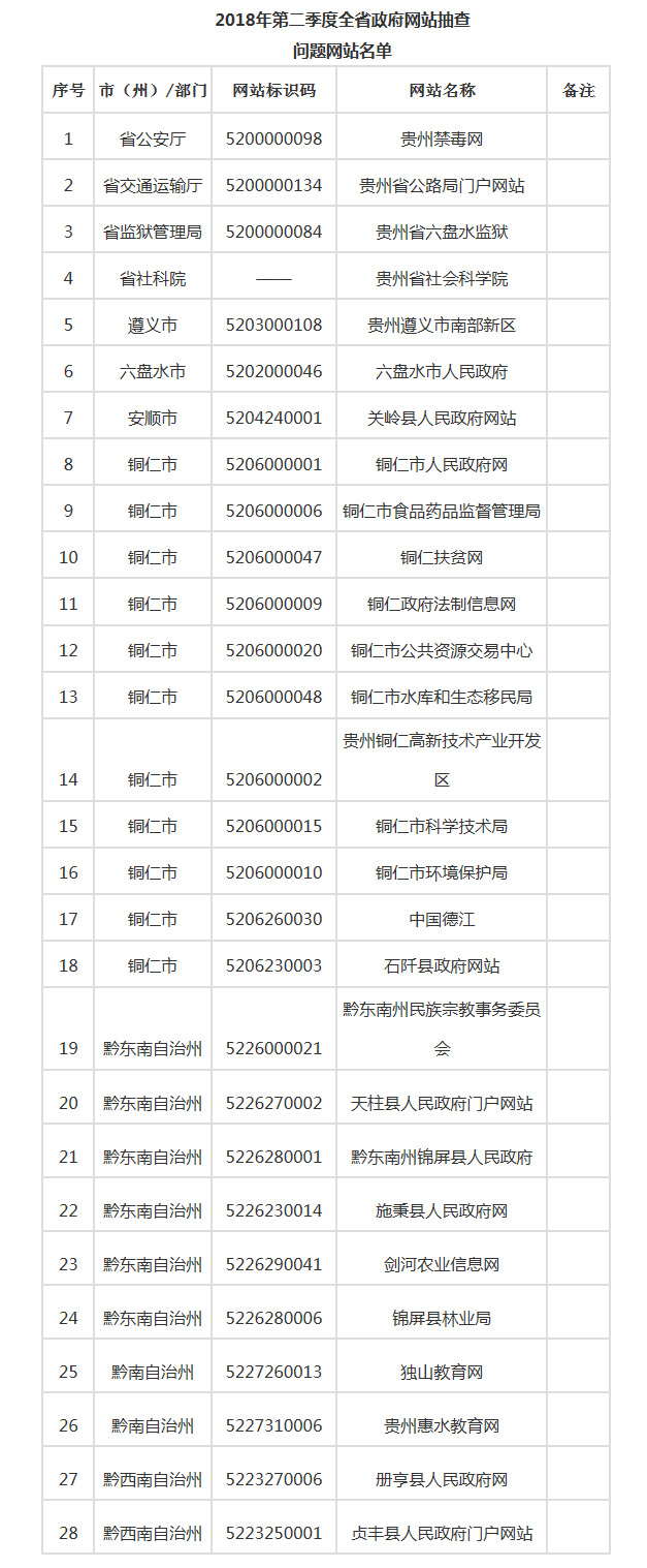 贵州省人民政府办公厅关于2018年第二季度全省政府网站抽查情况的通报