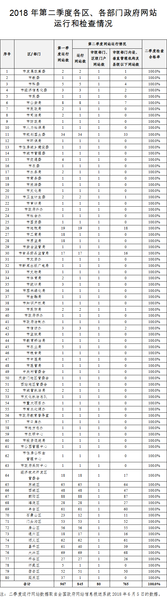 北京市人民政府办公厅关于2018年第二季度全市政府网站普查情况的通报