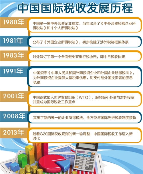 2001年,中国正式加入世界贸易组织(WTO),服务吸引外资与对外投资并重成为国际税收工作重点。2008年实施了新的统一的企业所得税法,全方位与国际先进税收制度接轨。2013年随着G20国际税收规则的新一轮调整,中国国际税收工作迈入新时代。