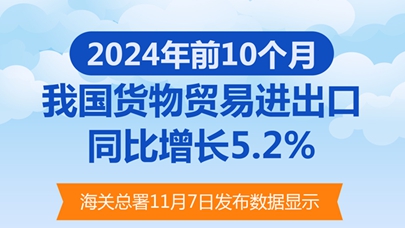 图表:2024年前10个月我国货物贸易进出口同比增长5.2%