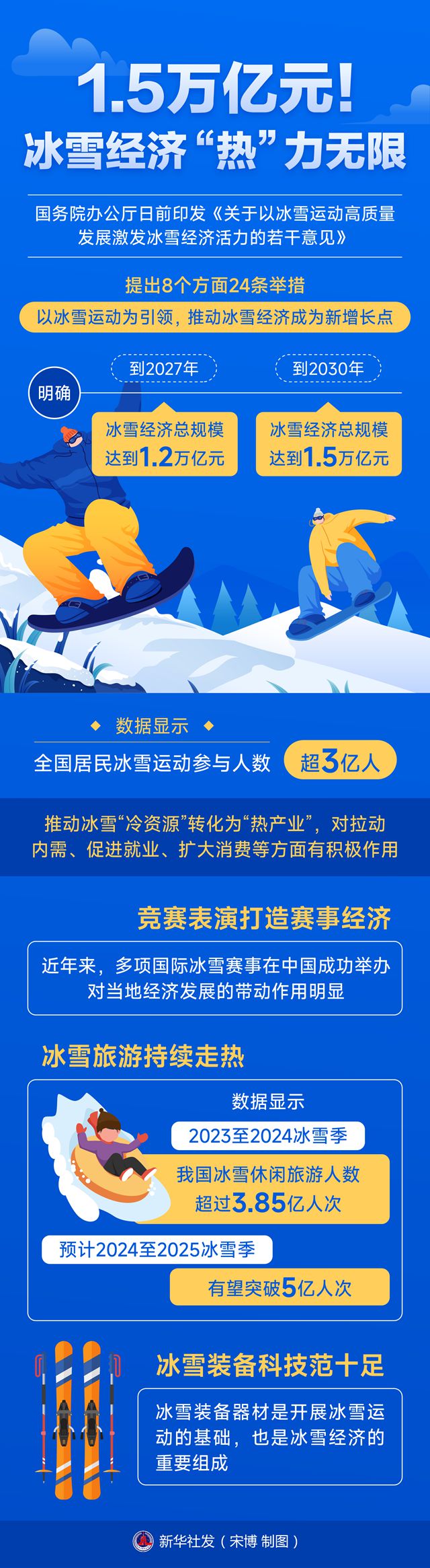 江南平台入口 办公厅日前印发《关于以冰雪运动高质量发展激发冰雪经济活力的若干意见》,提出8个方面24条举措,以冰雪运动为引领,推动冰雪经济成为新增长点。明确到2027年冰雪经济总规模达到1.2万亿元,到2030年冰雪经济总规模达到1.5万亿元。