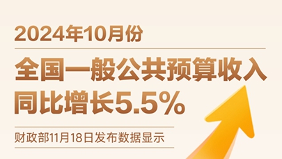 图表:2024年10月份全国一般公共预算收入同比增长5.5%