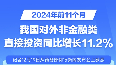 图表:2024年前11个月我国对外非金融类直接投资同比增长11.2%