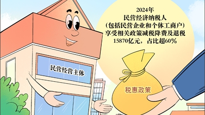国家税务总局2月26日发布的数据显示,2024年现行支持科技创新和制造业发展的主要政策减税降费及退税26293亿元,其中,民营经济纳税人(包括民营企业和个体工商户)享受相关政策减税降费及退税15870亿元,占比超60%。