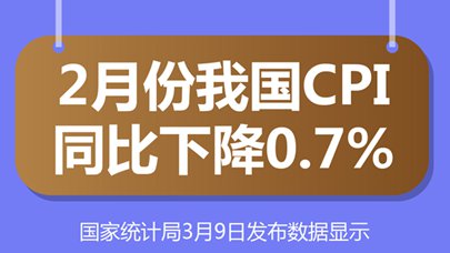 国家统计局3月9日发布数据显示,2月份,受春节错月、假期和部分国际大宗商品价格波动等因素影响,全国居民消费价格指数(CPI)同比下降0.7%,环比下降0.2%。