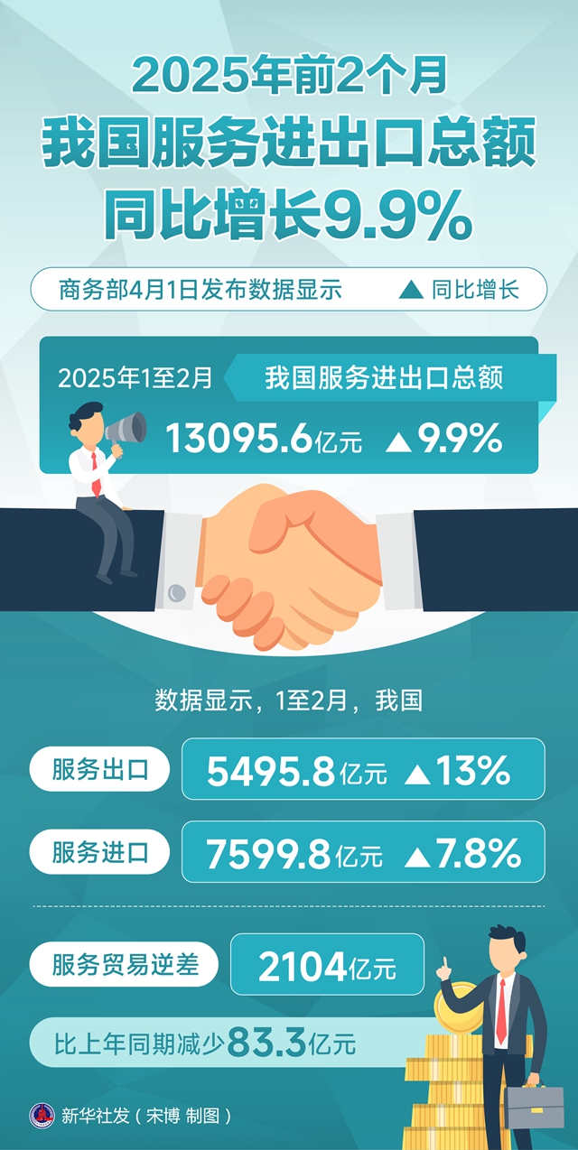 图表:2025年前2个月我国服务进出口总额同比增长9.9%