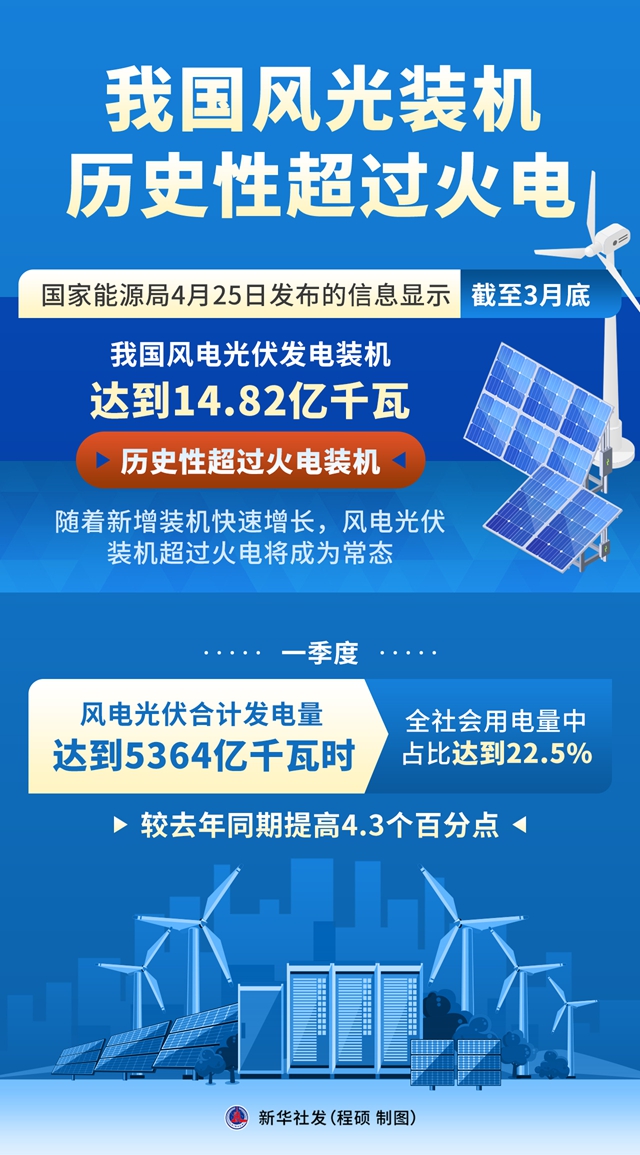 国家江南官网app 4月25日发布的信息显示,截至3月底,我国风电光伏发电装机达到14.82亿千瓦,历史性超过火电装机。随着新增装机快速增长,风电光伏装机超过火电将成为常态。