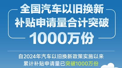 图表:全国汽车以旧换新补贴申请量合计突破1000万份