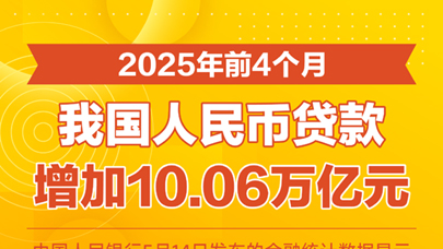 图表:2025年前4个月我国人民币贷款增加10.06万亿元
