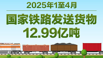 图表:2025年1至4月国家铁路发送货物12.99亿吨