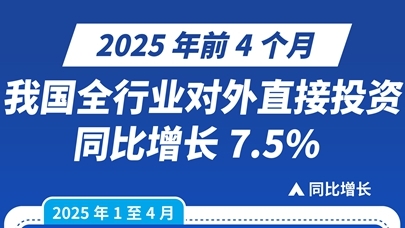 图表:2025年前4个月我国全行业对外直接投资同比增长7.5%