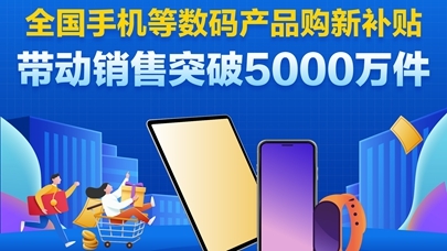 图表:全国手机等数码产品购新补贴带动销售突破5000万件
