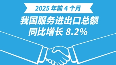 图表:2025年前4个月我国服务进出口总额同比增长8.2%