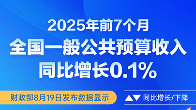 财政部8月19日发布数据显示,今年前7个月,全国一般公共预算收入135839亿元,同比增长0.1%。