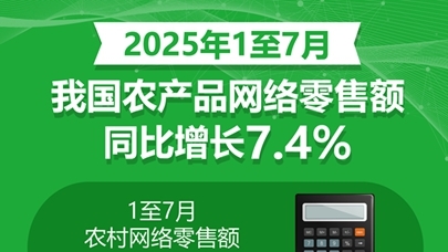 商务部新闻发言人何咏前8月21日介绍,今年1至7月,我国农产品网络零售额同比增长7.4%。
