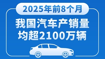 图表:2025年前8个月我国汽车产销量均超2100万辆