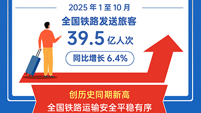 图表:2025年前10月全国铁路发送旅客39.5亿人次 创历史同期新高