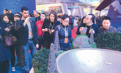 各国记者参观“砥砺奋进的五年”大型成就展。记者 李贞 摄