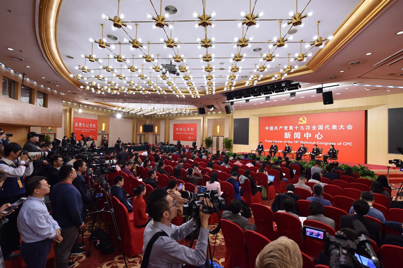 10月19日,中国共产党第十九次全国代表大会新闻中心举行主题为“推进全面依法治国”的集体采访活动。江苏薛济民律师事务所主任薛济民,上海市浦东新区人民检察院公诉二处命名检察官施净岚,江苏省委政法委副书记、省综治办主任朱光远,北京知识产权法院党组成员、副院长宋鱼水,公安部物证鉴定中心法医病理损伤技术处副处长田雪梅接受采访。
