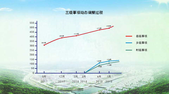 ——动态调整,科学合理。建立政务公开事项动态调整机制,根据上级对权责清单、公共服务清单的调整以及群众关切事项的变化,适时调整公开事项;围绕政务公开运行过程和群众反馈情况,及时研究,主动调整公开事项。经过5次动态调整,九个试点领域县、乡、三村级公开事项分别由最初的304项、78项、54项调整为490项、136项、110项,三级公开事项实现了由“比较准确”到“十分准确”的转变。