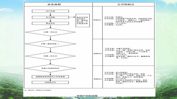 ——双管齐下,全面梳理。严格按照“五公开”要求,结合省政府办公厅下发的试点领域公开基本范围指引,依据权责清单、公共服务事项清单以及群众关切事项“三张清单”,分试点部门逐一梳理,将“三张清单”涉及的行政权力、公共服务事项和群众关切事项全部纳入公开目录,并根据事项的具体情况,再确定该事项由县、乡、村哪级公开,形成“三级目录”的征求意见稿。“三级目录”征求意见稿形成后,先后三次同步征求省市主管部门和乡镇、村的意见,对反馈的合理意见及时采纳,确保目录全面、准确、规范。与此同时,对业务工作按办事流程进行分解,在申请、审核、公示等环节一一对应确定公开节点,业务流程的内容在公开流程中全面呈现,实现了业务流程与公开流程的“精准对接”。