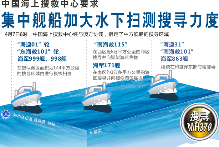 4月8日:中国海上搜救中心要求集中舰船加大水下扫测搜寻力度